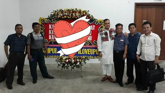 "Ini (Tulisan di karangan bunga) adalah salah satu liriknya, ini untuk KPK dari kami, KPK ini lembaga yang sangat ditakuti ya tapi dalam hal ini saya mengapresiasikannya dalam sebuah seni, enggak terlalu serem juga lirik lagunya, ada kisah romantisnya juga," ungkapnya.